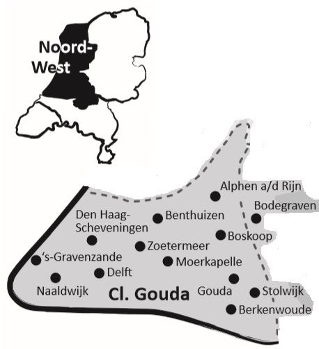 Alphen aan den Rijn, Benthuizen, Berkenwoude, Boskoop, Delft, Den Haag - Scheveningen, Gouda, 's-Gravenzande, Moerkapelle, Naaldwijk, Stolwijk, Zoetermeer.